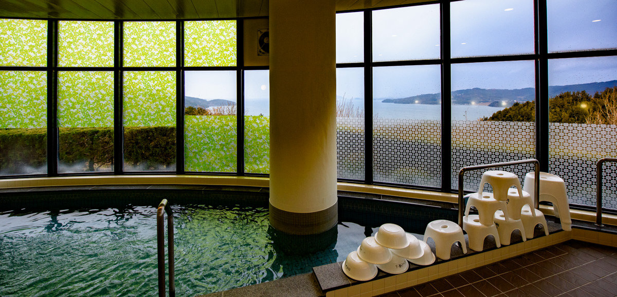 2階にある浴場は大村湾の眺望を楽しみながら入浴できる展望風呂。